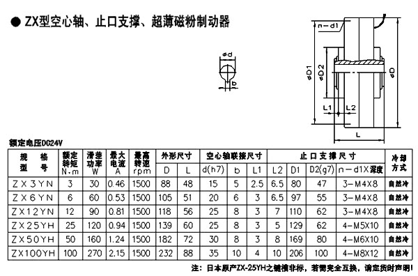 ZX型空心軸止口支撐超薄磁粉制動(dòng)器型號(hào)標(biāo)準(zhǔn)參照日本三菱電機(jī)ZX-YN型產(chǎn)品、ZX-YH型產(chǎn)品。