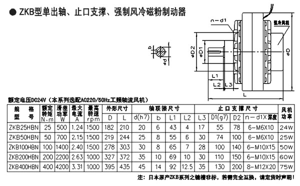 ZKB型單出軸止口支撐強(qiáng)制風(fēng)冷磁粉制動(dòng)器型號(hào)標(biāo)準(zhǔn)參照日本三菱電機(jī)ZKB-AN和ZKB-BN型產(chǎn)品,晨港機(jī)電ZKB型磁粉制動(dòng)器產(chǎn)品和日本原裝產(chǎn)品的安裝尺寸上可以互換,在性能使用上可以替代日本原裝產(chǎn)品。
