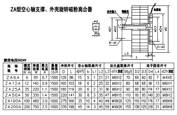 ZA型空心軸支撐外殼旋轉磁粉離合器具有激磁電流與輸出轉矩成線性關系、穩(wěn)定的滑差轉矩、控制功率小、響應速度快等特點。